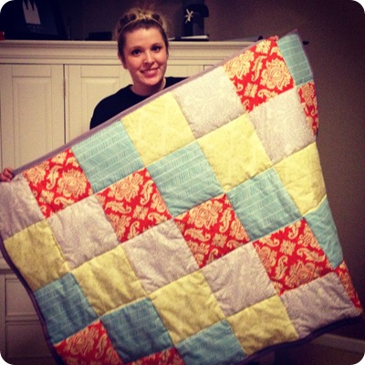 Before Genevieve was born I made her several blankets and a small crib sized quilt. However, I want to have a nice quilt for each of my kids and still hadn’t finished Vieve’s until last week, even though she just turned 8 months old. Oops!
